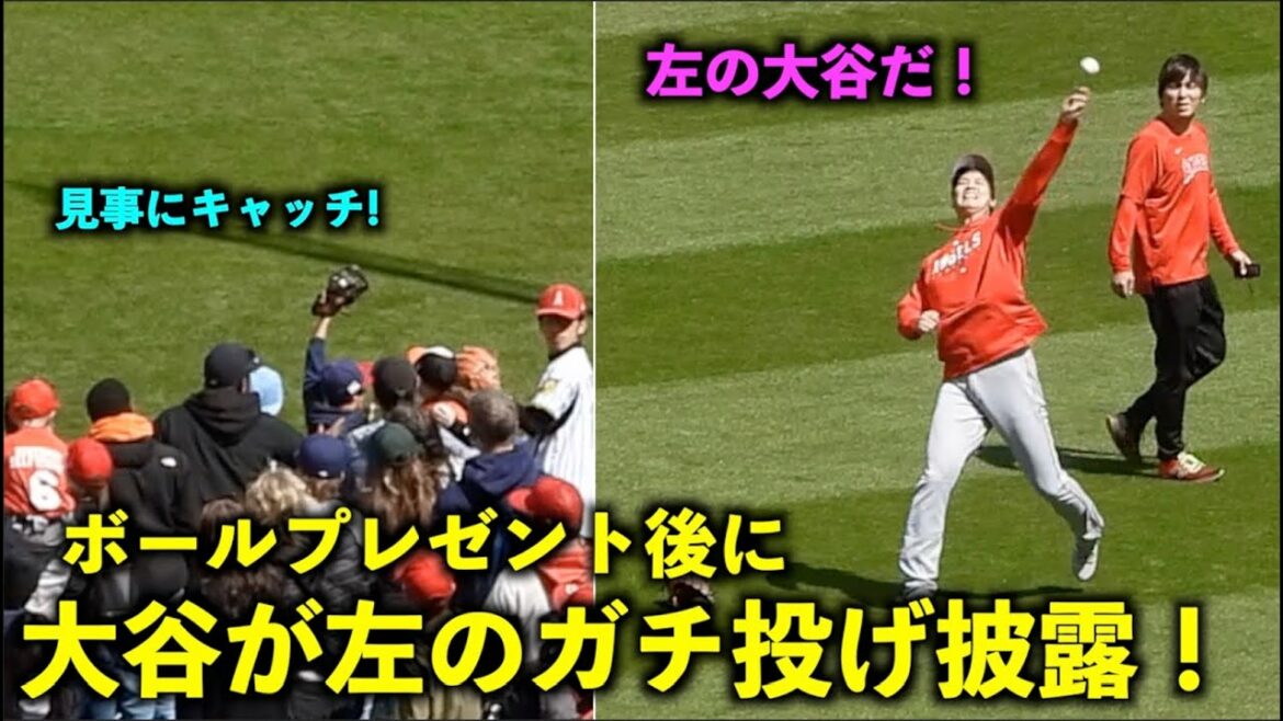 大谷翔平 キッズにボールプレゼントした後に左投げを披露するファンサービス!【現地映像】エンゼルスvsアスレチックス第3戦 4月3日