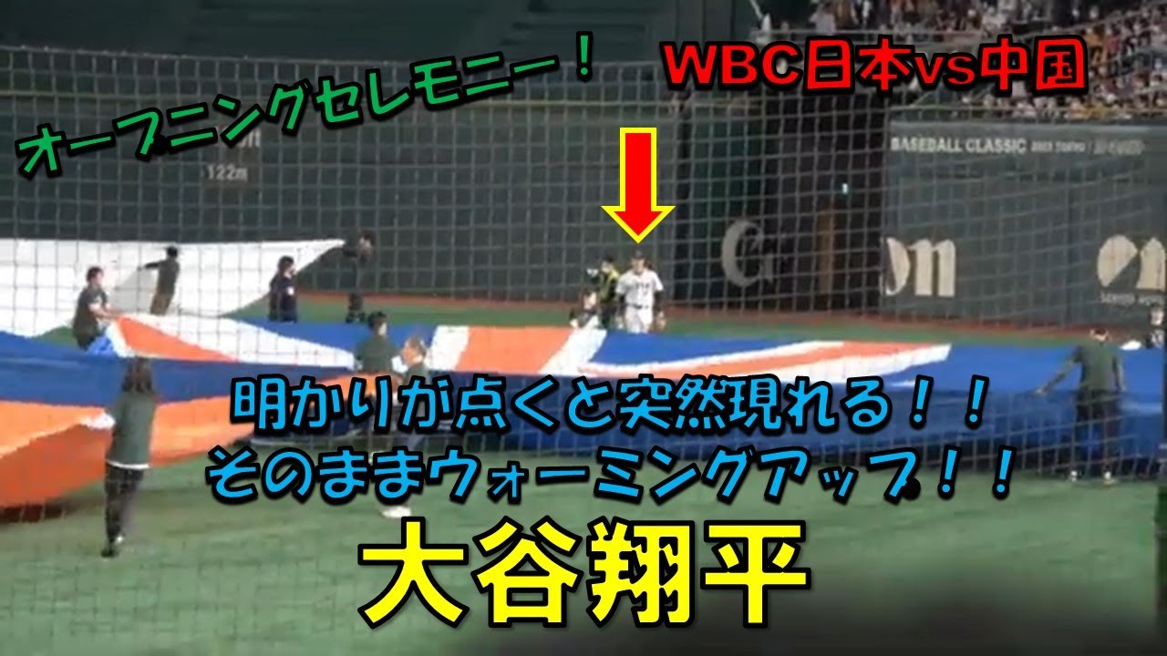 大谷翔平 オープニングセレモニー中、明かりが点くと突然現れる!!そのままウォーミングアップ!! 2023WBC開会式 日本対中国 2023/3/9 東京ドーム 【現地映像】
