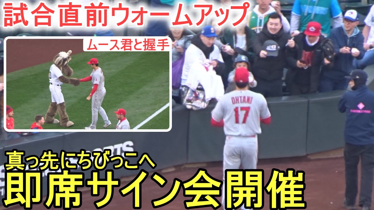 試合直前ウォームアップ中に即席サイン会開催【大谷翔平選手】~対マリナーズ・シリーズ初戦~Shohei Ohtani vs Mariners 2023