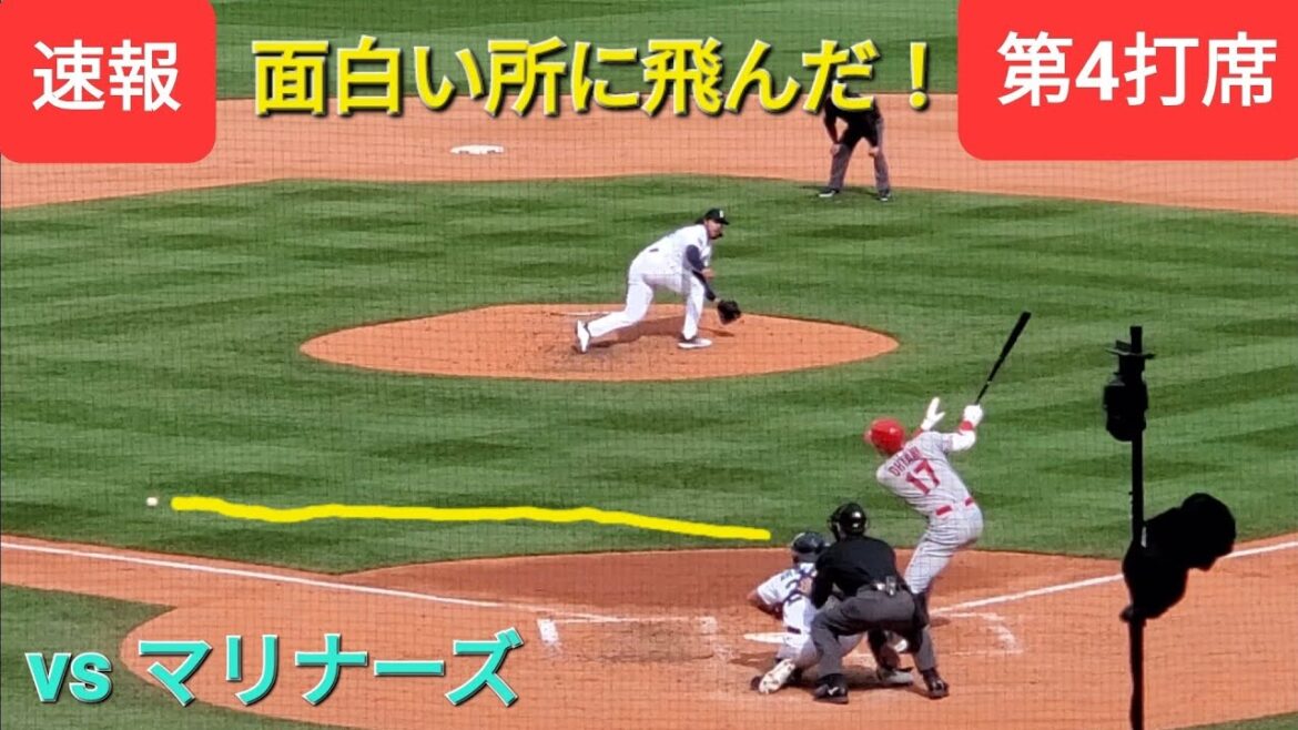 第4打席【大谷翔平選手】トラウト兄貴の全力疾走タイムリー内野安打に続き、面白いところに飛んでタイムリーヒット❗貴重な追加点をあげる〜打点1〜