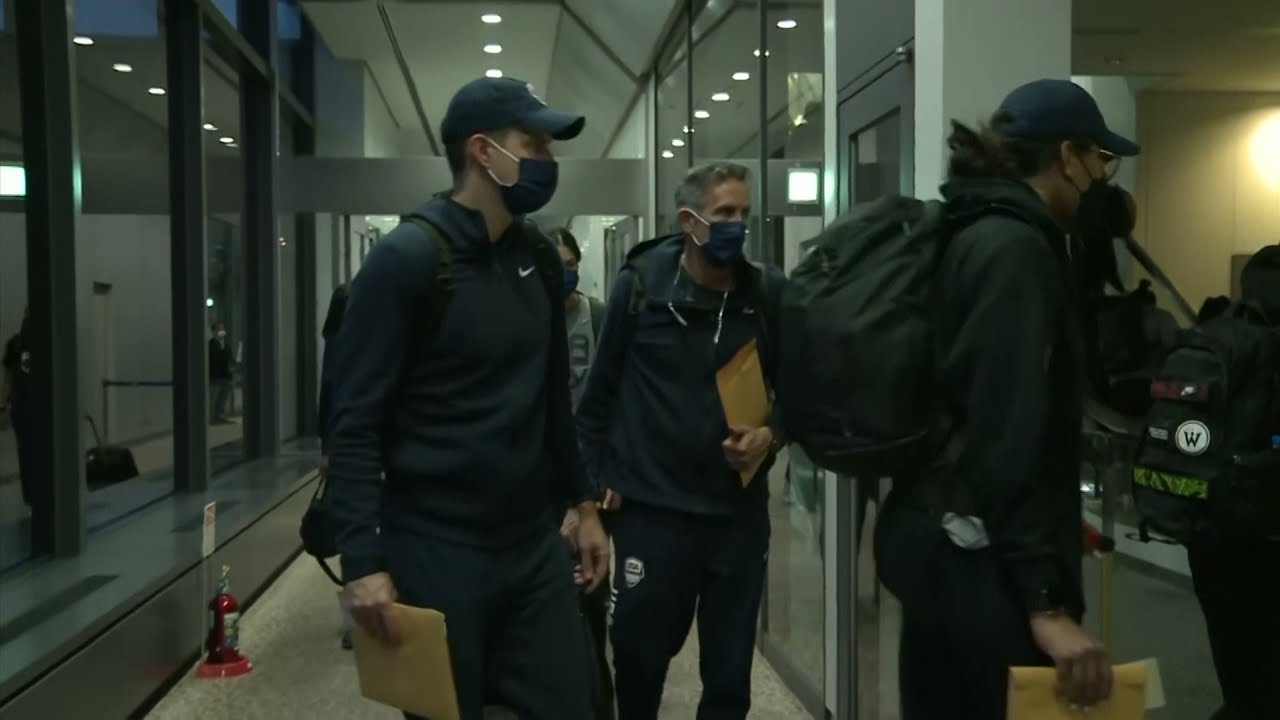 アメリカの男子と女子の選手と役員がオリンピックのために東京の成田空港に到着します。 。