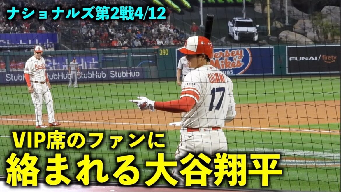 ネクストでVIP席のファンに絡まれる大谷翔平【現地映像】エンゼルスvsナショナルズ第2戦4/12