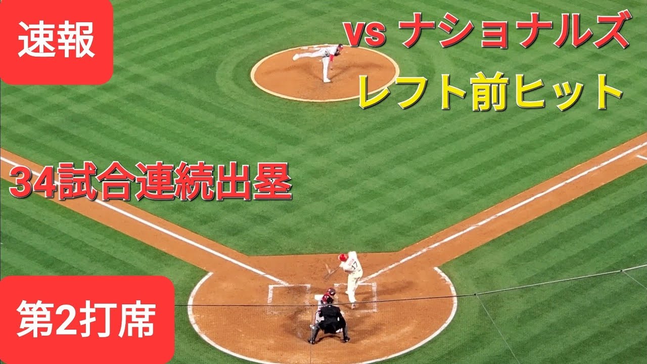 第2打席【大谷翔平選手】ノーアウトランナー1塁2塁のチャンスでレフト前ヒット‼️満塁にチャンスを広げる〜34試合連続出塁