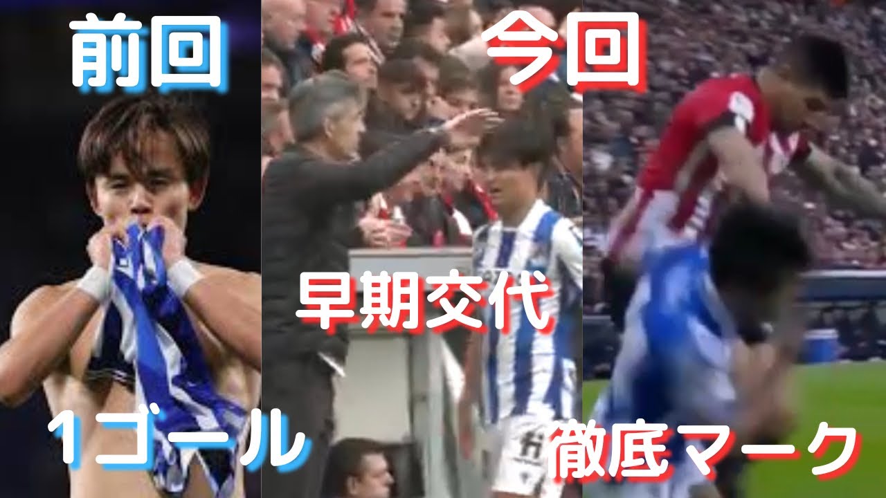 久保建英ソシエダ0-2ビルバオ(ラ・リーガ第29節,23.4.15)前回ダービーでの活躍を期待するも激しすぎるマークに早期交代で「CL怪しいな」日本の反応