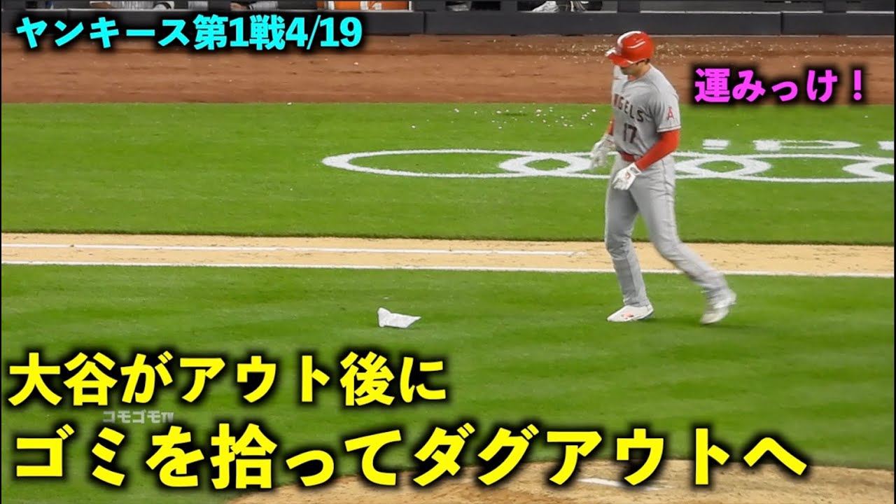 特大運みっけ!アウト後にゴミを拾ってダグアウトに戻る大谷翔平【現地映像】エンゼルスvsヤンキース第1戦4/19