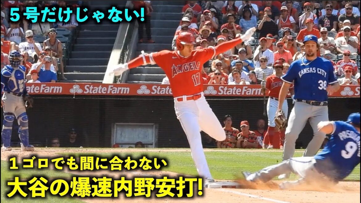 マジで速い…大谷翔平 ファーストへの爆速内野安打がヤバすぎる!【現地映像】エンゼルスvsロイヤルズ第3戦4/24