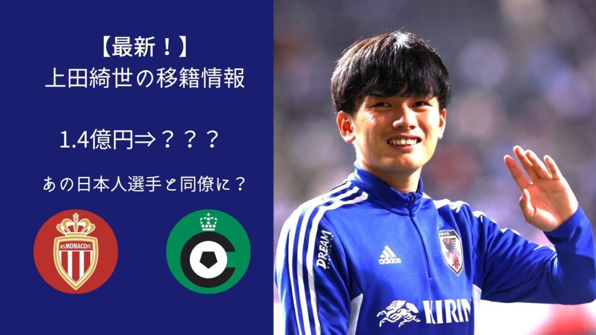 上田は2022年7月、鹿島アントラーズからセルクルに完全移籍。ただセルクルはASモナコの傘下にあり、同じオーナー企業が保有していることからモナコ移籍の可能性もあり。