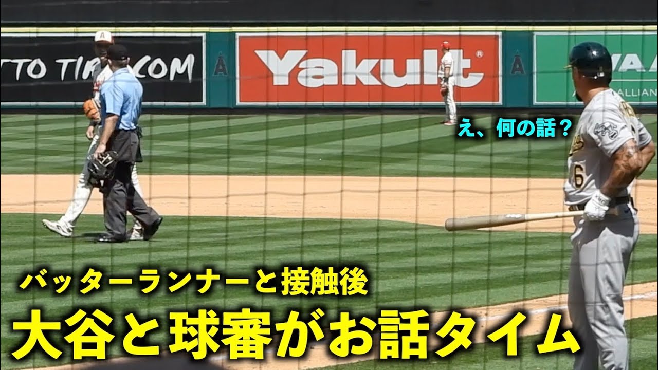 バッターランナーと接触後、大谷翔平と球審がお話タイム!【現地映像】エンゼルスvsアスレチックス第4戦4/28