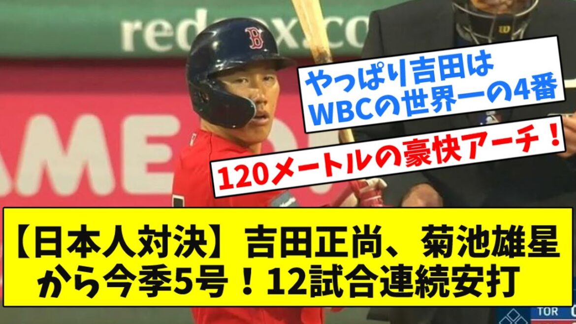 吉田正尚、5試合ぶり今季5号!菊池雄星との日本人対決で飛距離約120メートルの豪快アーチ メジャートップ12試合連続安打もマーク