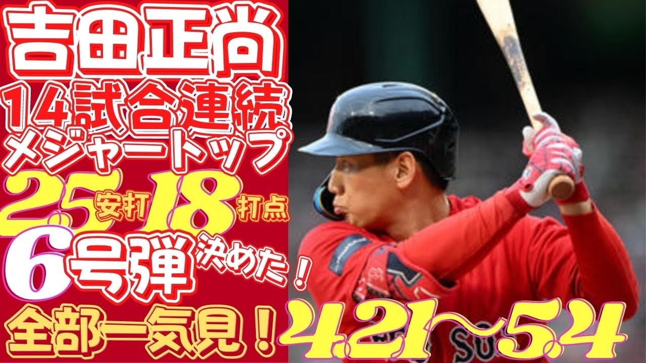レッドソックス吉田正尚選手は「2番左翼」でスタメン出場。第1打席に右中間へ先制の6号ソロを放ち、5打数3安打3打点と活躍。今季メジャー最長の14試合連続安打を継続した。