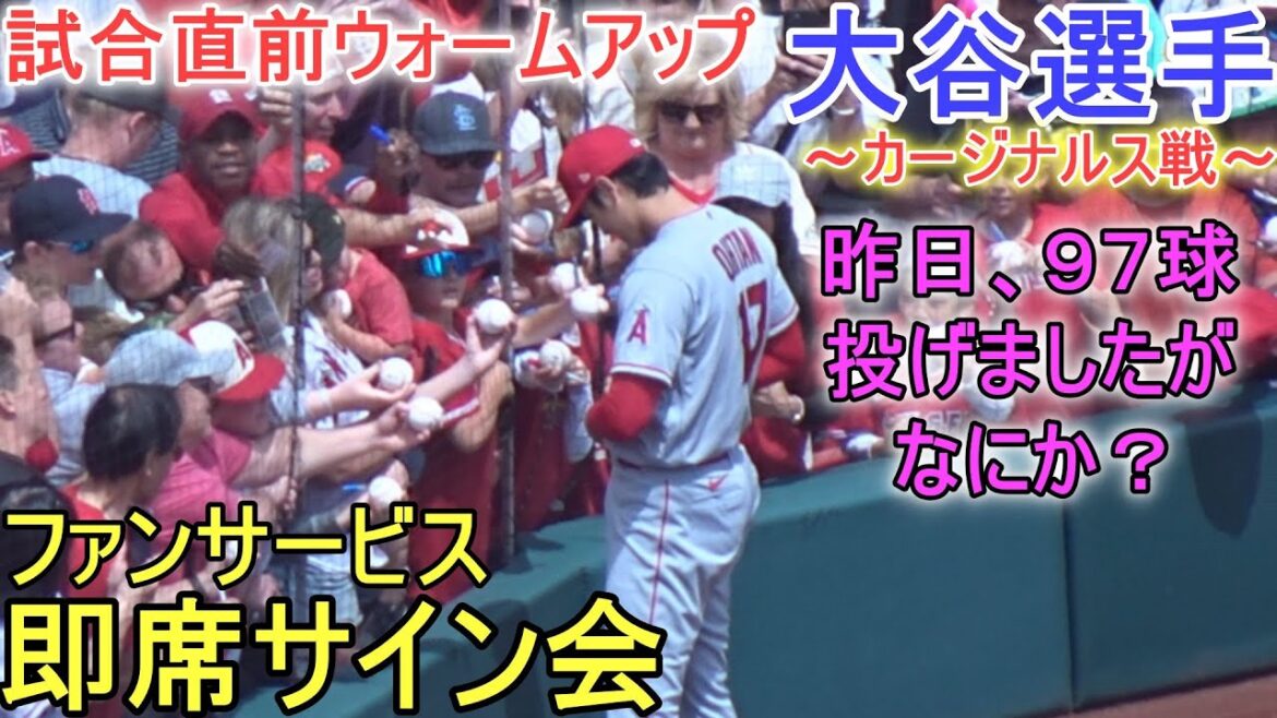 試合直前ウォームアップ中にファンサービスをする大谷翔平選手。セントルイスのファンに即席サイン会が行われた。 ~対カージナルス・シリーズ最終戦~ 2番DHで出場の大谷翔平選手 @Shinsuke Handyman #大谷翔平 #エンジェルス #ウォームアップ 2023BaseballCardinalsJapanMajor League BaseballMLBohtaniOhtani ShoheishoheiShohei OHtanist.LouisWarm Upウォームアップカージナルスセントルイスファンサービス大谷大谷翔平日本翔平 NIHON2020.COM