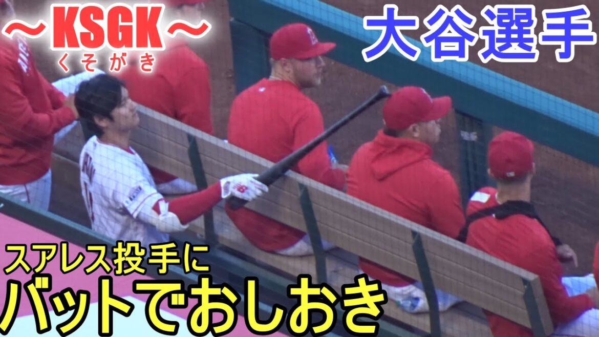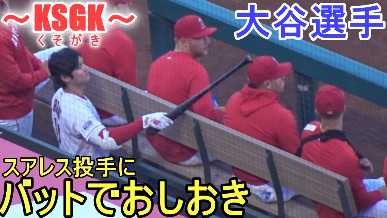 ダグアウトでスアレス投手にバットでおしおきをする大谷翔平選手。スアレス投手のリアクションが面白い。 ~対レンジャーズ・シリーズ初戦~ 3番DHで出場の大谷翔平選手 @Shinsuke Handyman #大谷翔平 #エンジェルス #スアレス 2023BaseballJapanKSGKMajor League BaseballMLBohtaniOhtani ShoheiRangersshoheiShohei OHtanitexasくそがきテキサスレンジャーズ大谷大谷翔平日本翔平 NIHON2020.COM