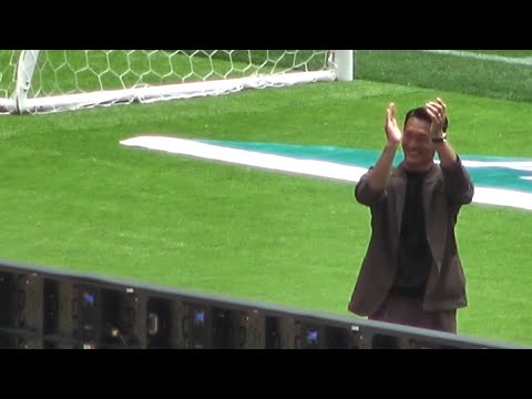 試合前には様々なイベント企画が行われており、ホーム側の鹿島アントラーズサポーター前に登場したピッチ上でのリポート中の元浦和レッズの槙野智章に対して、歓迎を意味するウェルカムブーイングと拍手で迎えており、槇野も笑って手を振っています。