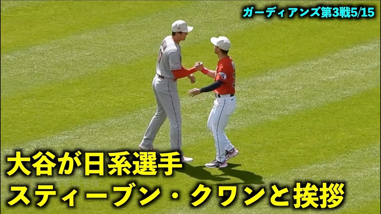 日本式の光景も!大谷翔平 日系選手のスティーブン・クワンと挨拶!【現地映像】エンゼルスvsガーディアンズ第3戦5/15