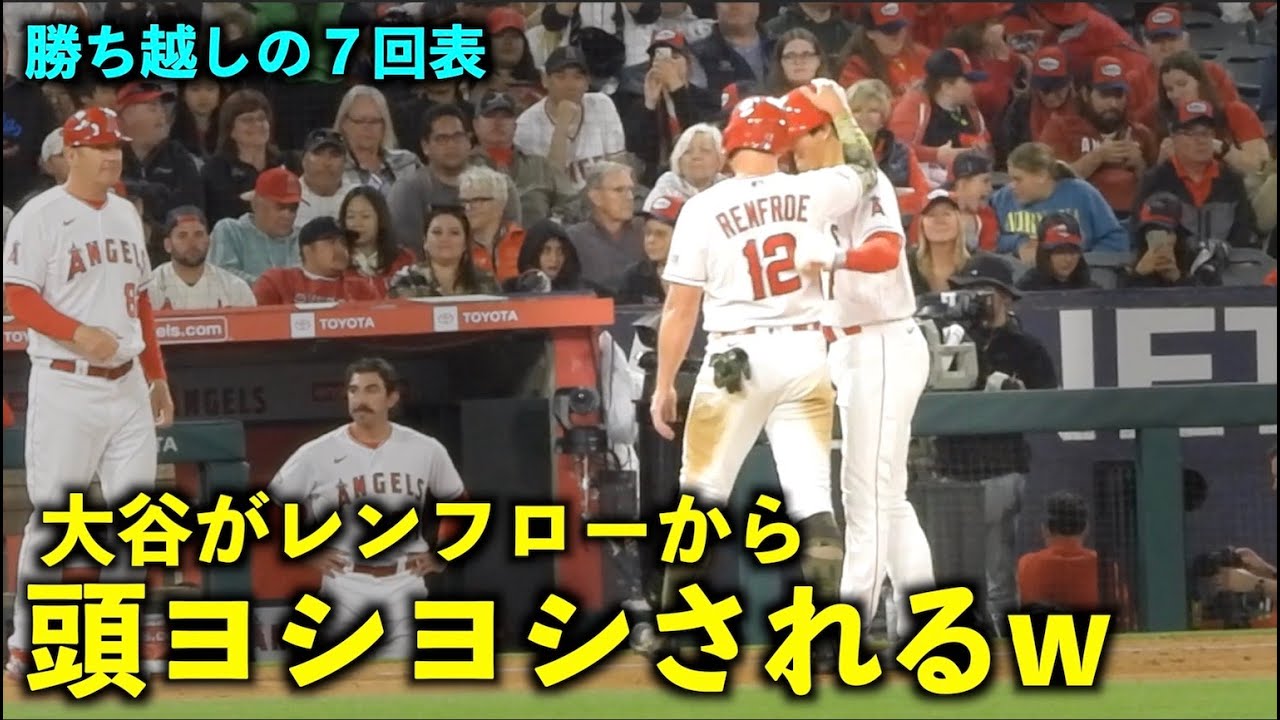 首痛そうw タイム中にレンフローから頭をヨシヨシされる大谷翔平【現地映像】エンゼルスvsツインズ第1戦5/20