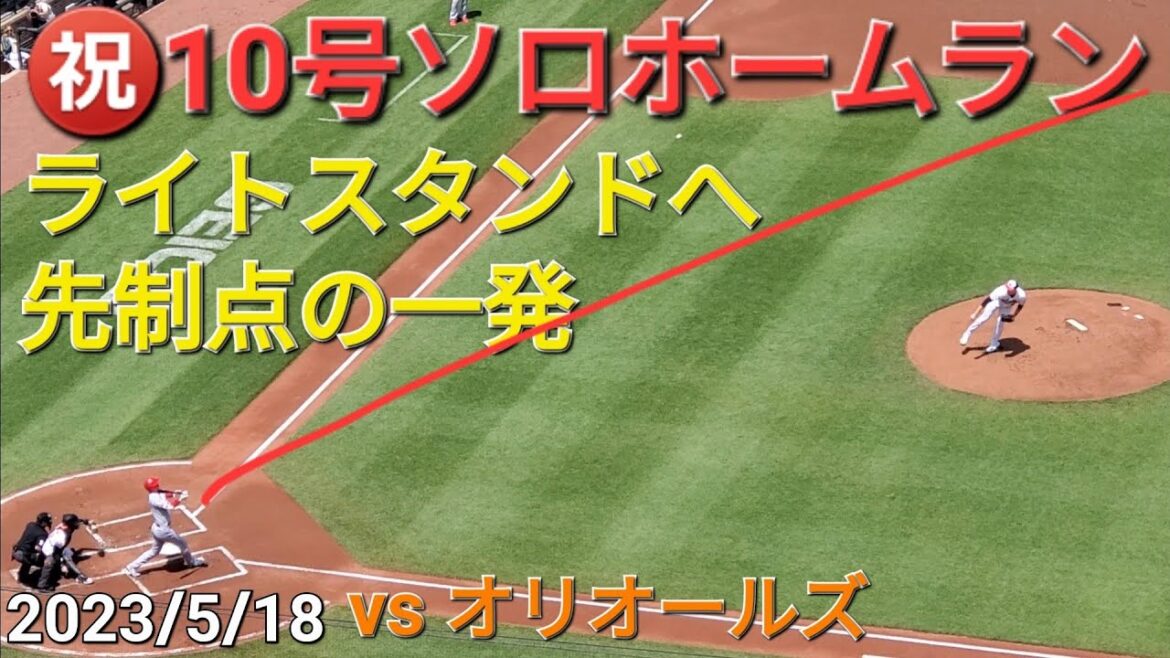 ㊗️10号ソロホームラン【大谷翔平選手】ライトスタンドへ先制点の一発‐打点1