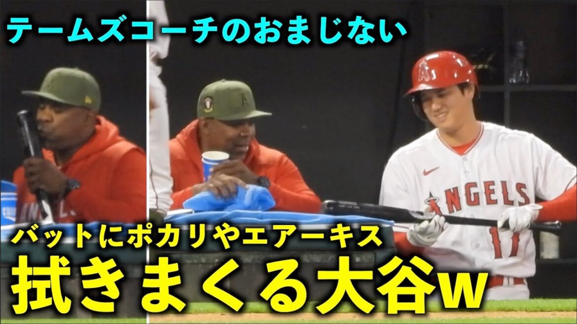 コーチがバットにエアーでキスやポカリ掛け!そして拭きまくる大谷翔平w 【現地映像】エンゼルスvsツインズ第1戦5/20