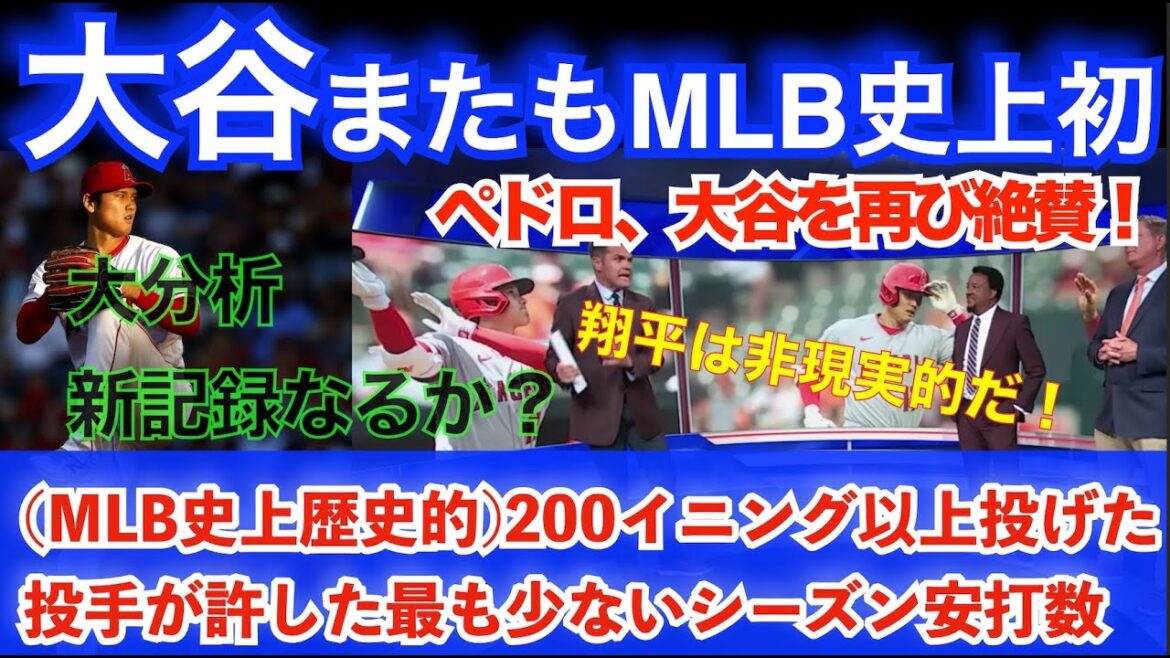 米MLB専門局「MLBネットワーク」から「200イニング以上投げた投手が許した最も少ないシーズン安打数」の記録を達成する可能性がある大谷翔平について議論された。番組はレッドソックスなどで通算219勝を挙げ、サイ・ヤング賞を3度受賞したペドロ氏とブルワーズなどで通算1057試合登板した鉄腕ダン・プリーサック氏をゲストに招き、投手・大谷について議論が行われた。司会:グレッグ・アムシンガー