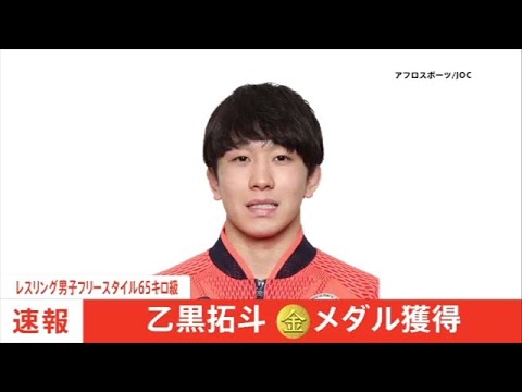 東京オリンピックレスリング男子フリースタイル65キロ級決勝。乙黒拓斗選手は、アゼルバイジャンのアリエフ選手との接戦を制し5-4で勝利。金メダルを獲得しました。