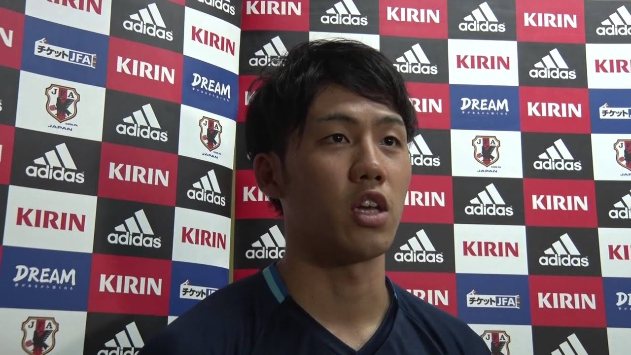 カンボジアに移動して初のトレーニング終了後、メディアの質問に応える遠藤航選手(湘南ベルマーレ)。