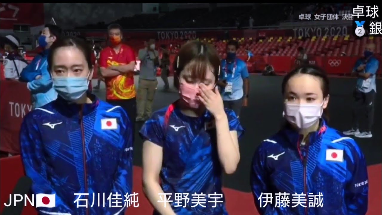 【卓球女子団体】日本0-3中国 涙の銀メダル! 石川佳純・伊藤美誠・平野美宇 オリンピック