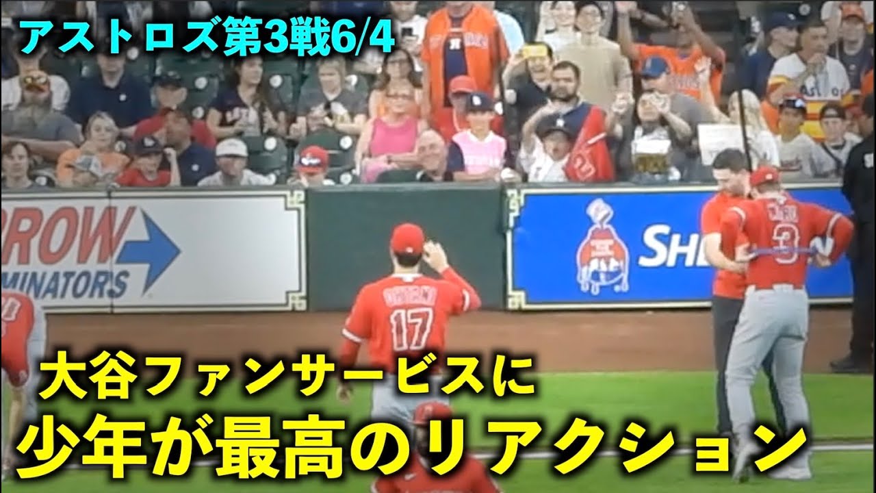 リアクション最高すぎる!大谷翔平のファンサービスに喜ぶ少年!【現地映像】エンゼルスvsアストロズ第3戦6/4