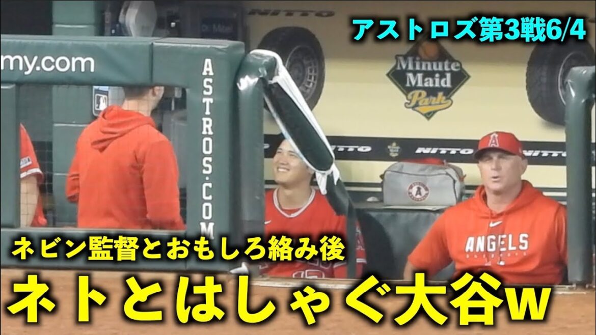 ネトとはしゃぐ大谷翔平w ネビン監督との絡みも面白い!【現地映像】エンゼルスvsアストロズ第3戦6/4