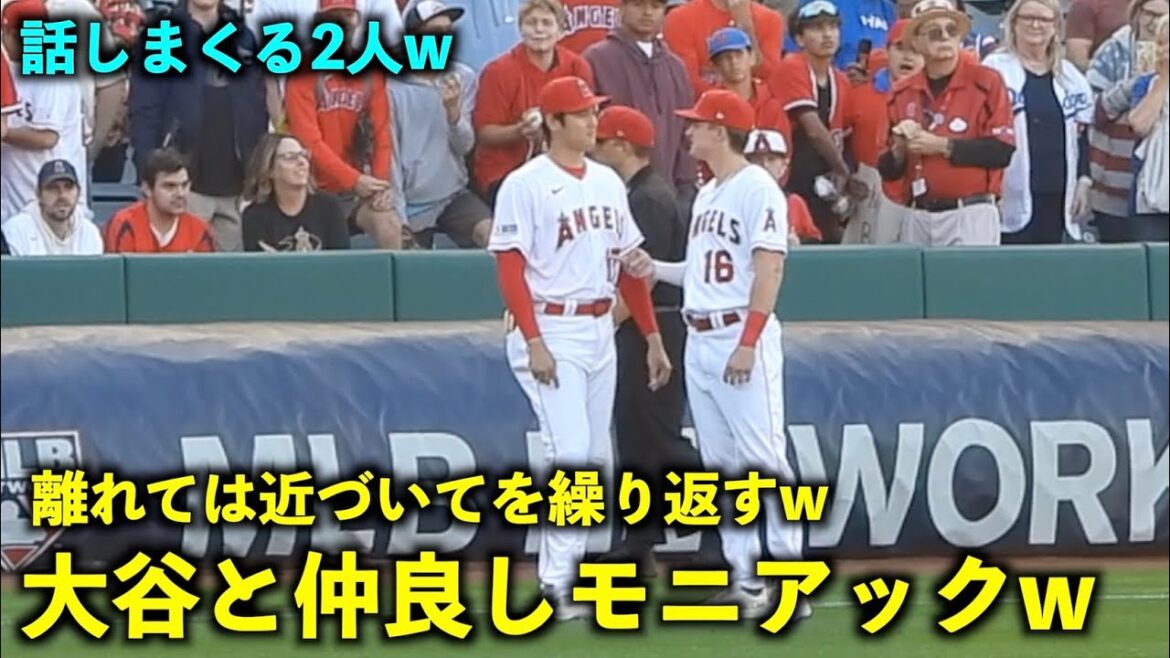 仲良すぎだろw 離れては近づいてを繰り返す大谷翔平とモニアックw【現地映像】エンゼルスvsカブス第2戦6/8
