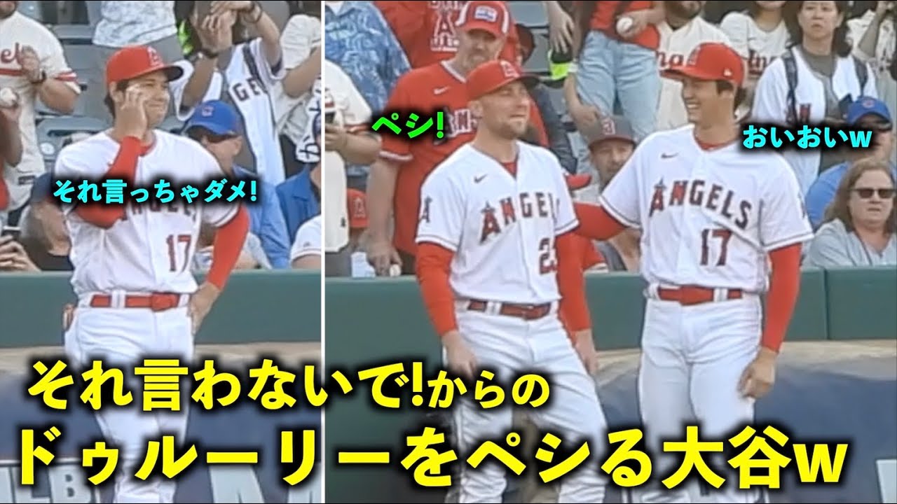 何を言ったんだw 大谷翔平がトゥルーリーの背中をペシるw【現地映像】エンゼルスvsカブス第3戦6/9