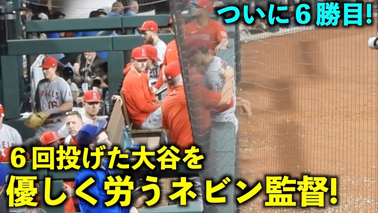 背中を優しくポンポン!6回投げた大谷翔平を労うネビン監督【現地映像】エンゼルスvsレンジャーズ第4戦6/16