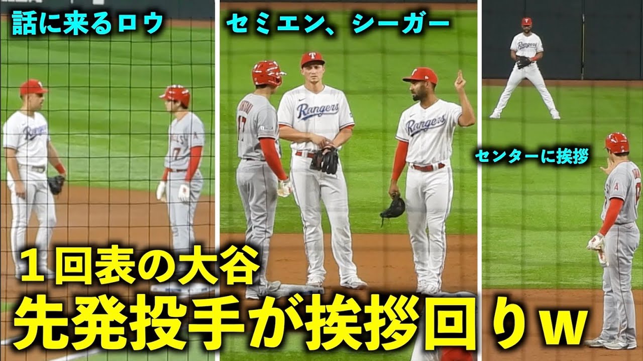 ピッチング前の異様な光景w 相手野手たちに挨拶回りしていく大谷翔平!【現地映像】エンゼルスvsレンジャーズ第4戦6/16