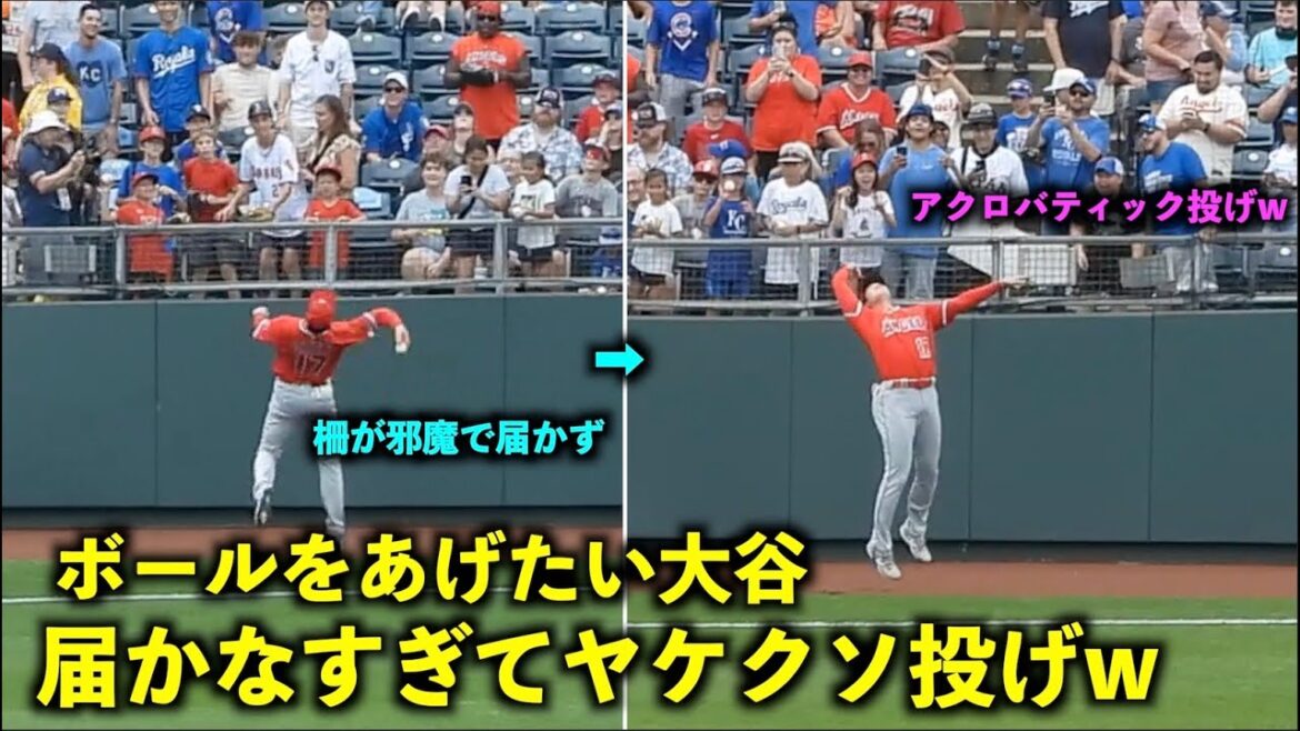 可愛すぎるw ボールをファンにあげたいのに柵が高すぎてヤケクソになる大谷翔平w【現地映像】エンゼルスvsロイヤルズ第2戦6/18