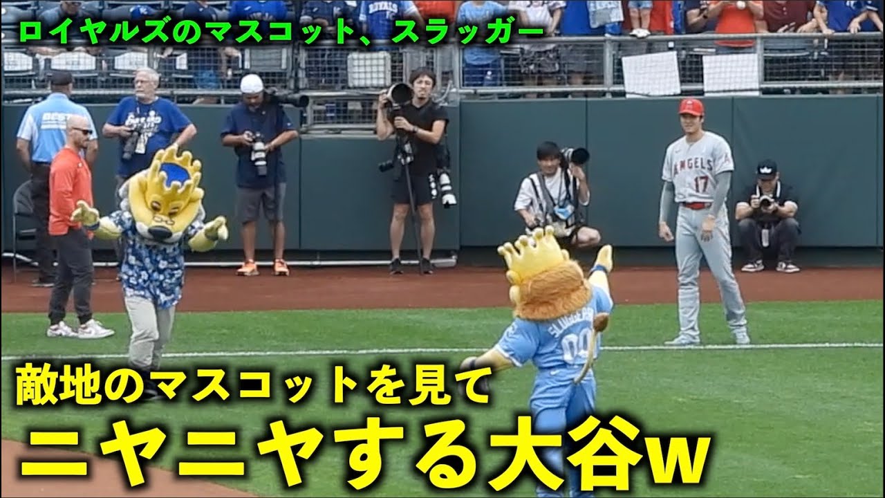 ロイヤルズのマスコット、スラッガーを見てニヤニヤする大谷翔平w【現地映像】エンゼルスvsロイヤルズ第3戦6/19