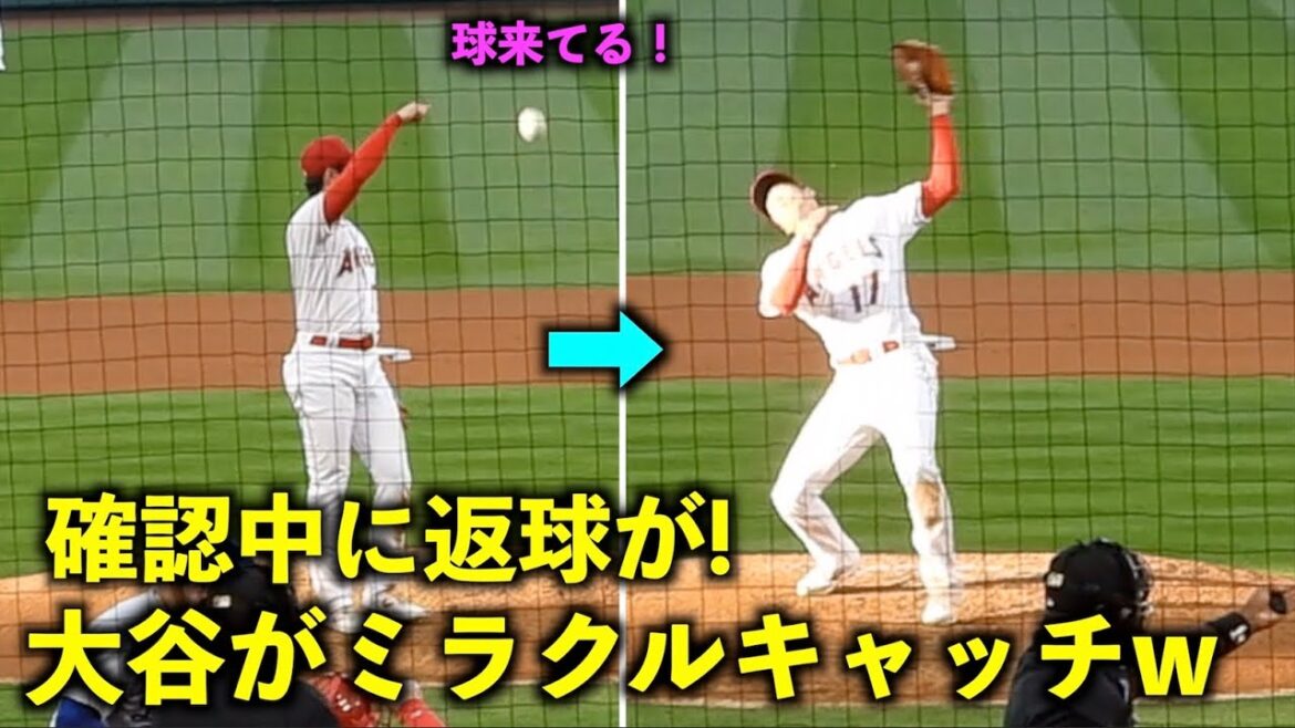 ハーフスイング確認中に返球が!大谷翔平が反射神経でミラクルキャッチw【現地映像】エンゼルスvsドジャース第2戦6/22