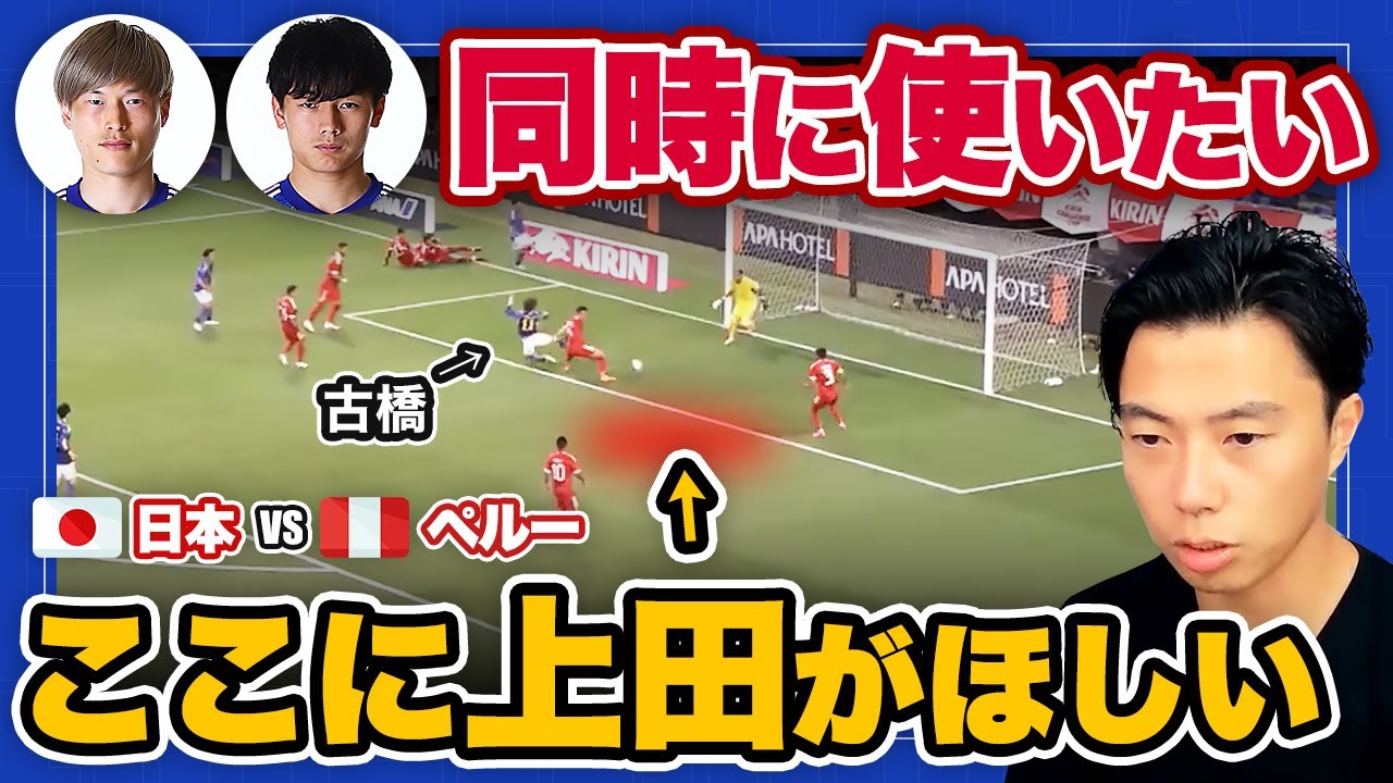 『日本 VS ペルー』古橋亨梧と上田綺世を同時につかいたいと思うシーンの切り抜き。