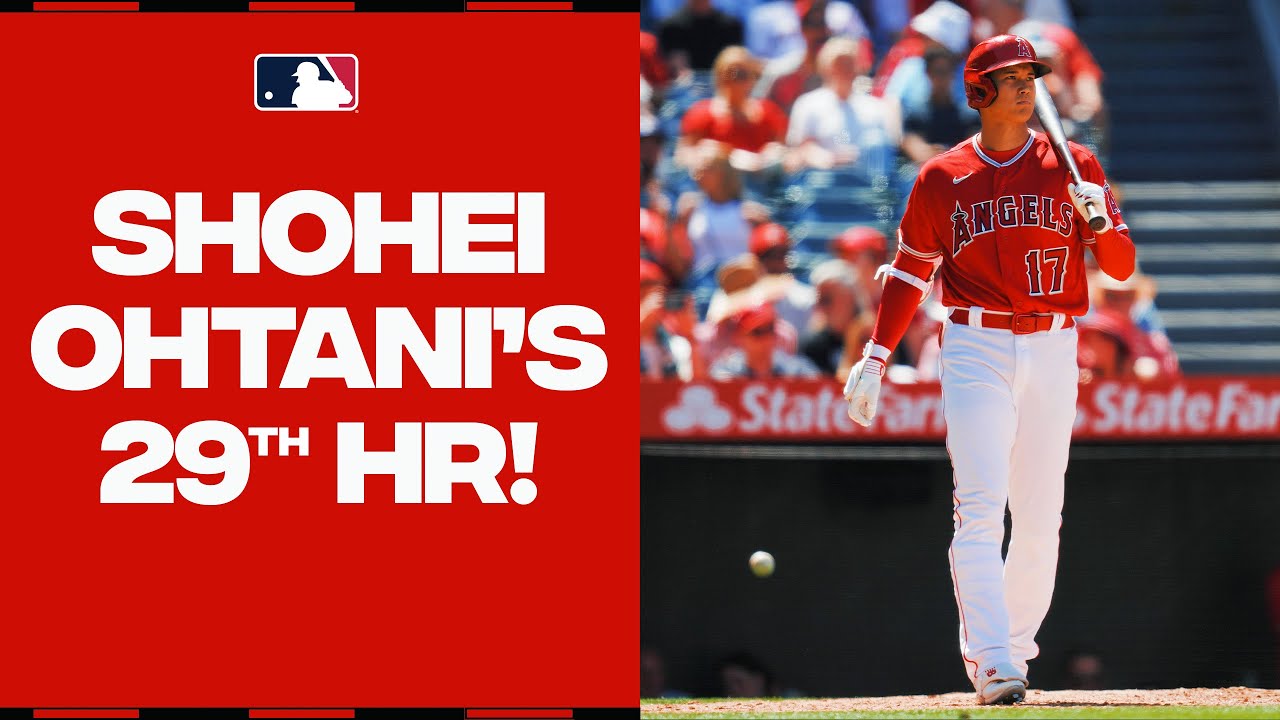Los Angeles Angels DH Shohei Ohtani hits his 29th home run of the season.
