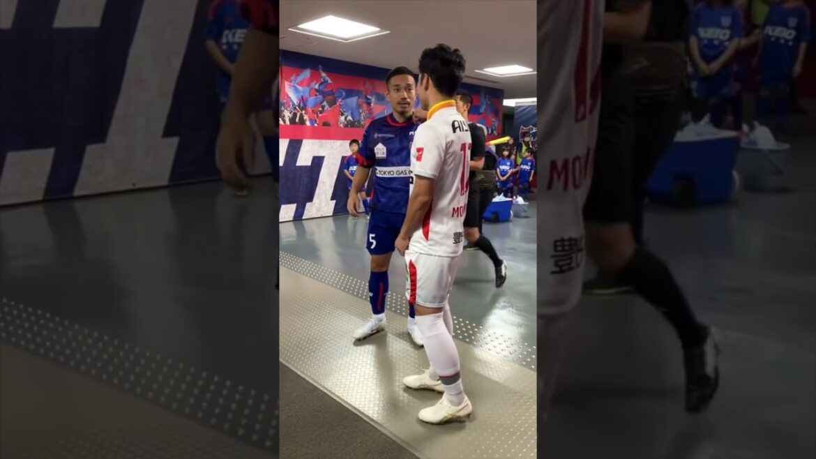 どんな声かけてもらったんでしょう😌#森下龍矢 選手が試合前 #明治大学 の大先輩 #長友佑都 選手へご挨拶🫡 #grampus #グランパス#名古屋グランパス#Jリーグ #shorts