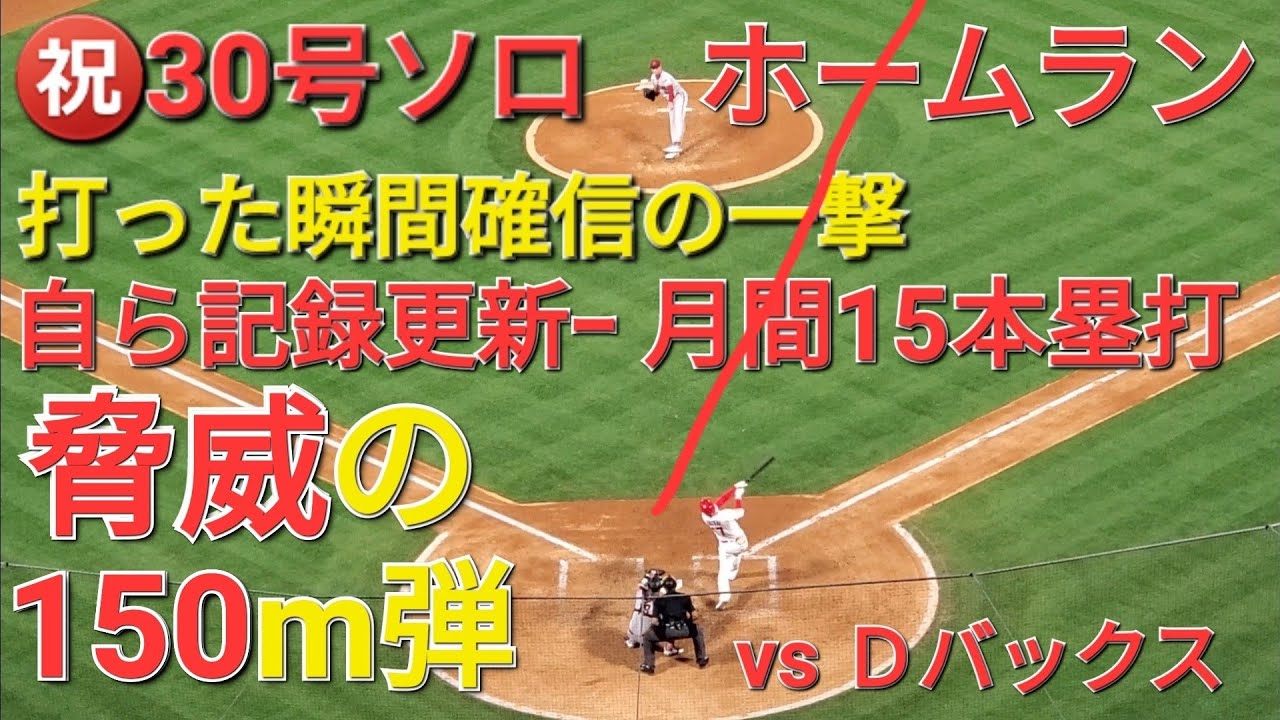 ㊗️30号ソロホームラン【大谷翔平選手】打った瞬間確信の一撃ーライトスタンド上段への150m弾ー自ら記録更新、月間15本塁打