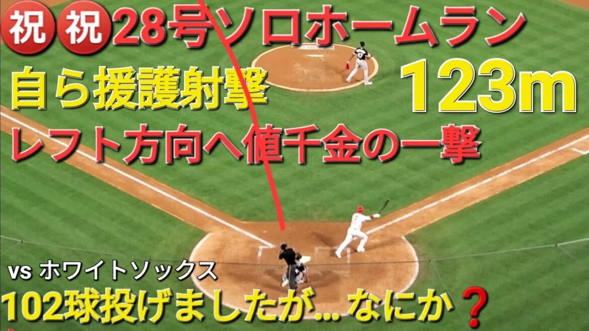 ㊗️㊗️28号ソロホームラン【大谷翔平選手】貴重な追加点を自ら打つ援護射撃-レフト方向へのホームラン-102球投げましたが…何か❓