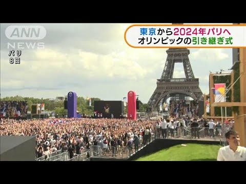 2024年にオリンピックが開かれるパリでは8日、東京大会の閉会式のパブリックビューイングが行われたほか、メダリストらも参加して東京からパリへとオリンピックを引き継ぐセレモニーが開かれました。