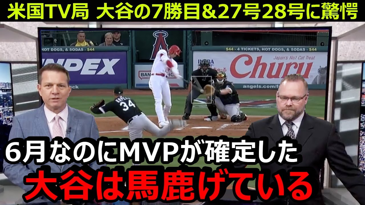 米国TV局が今季7勝目と27号28号本塁打の大谷翔平に驚愕「MVPが6月に確固たるものになるなんて見たことがない」【海外の反応/エンゼルス/MLB】