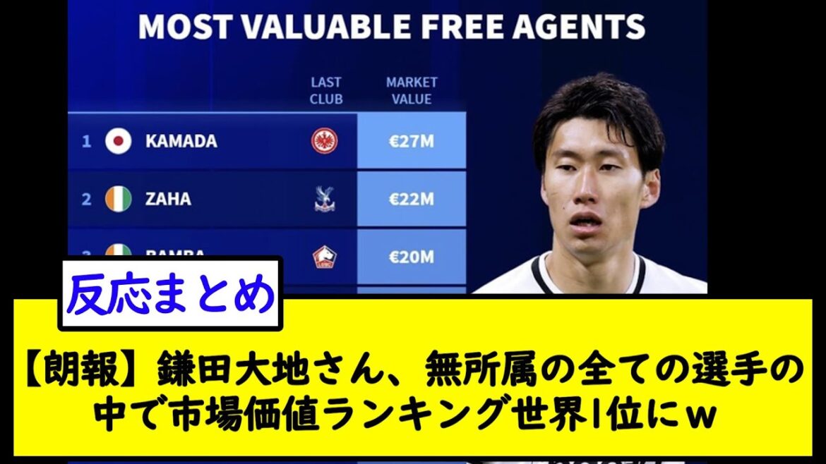 【朗報】鎌田大地さん、無所属の全ての選手の中で市場価値ランキング世界1位にw【2chサッカースレ】