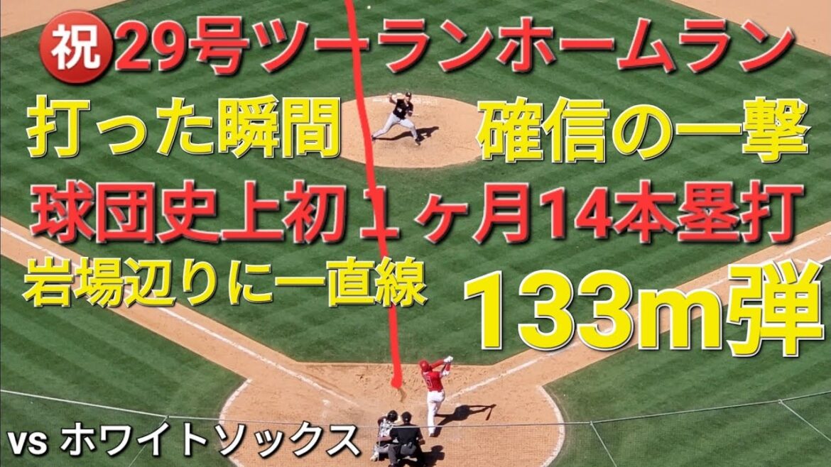 ㊗️29号ツーランホームラン【大谷翔平選手】打った瞬間確信の一撃ー岩場辺りに一直線ー球団史上&日本人初1ヶ月14本塁打