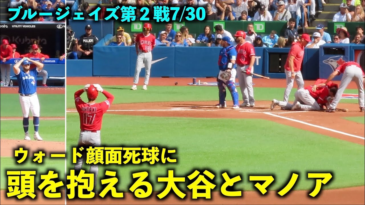試合一時中断!ウォードの顔面死球に頭を抱える大谷翔平とマノア【現地映像】エンゼルスvsブルージェイズ第2戦7/30