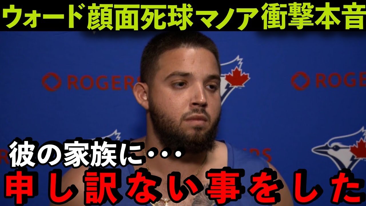 マノア投手の約147.5キロのシンカーがウォード外野手の鼻付近に当たって出血。塁上にいた大谷翔平は頭を抱えて心配そうに見守り、マノア投手もマウンド上でショックを受け、動揺した様子。