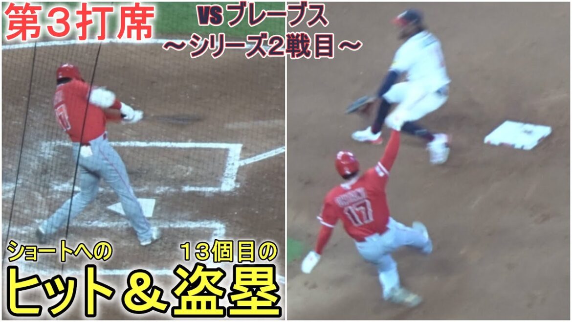 ショートへの強襲ヒットで出塁の大谷翔平選手。この後、今シーズン13個目盗塁を決める。 対アトランタ・ブレーブス~ シリーズ2戦目~ 2番DHで出場の大谷翔平選手 @shinsukehandyman #大谷翔平 #エンジェルス #塁上の様子 2023AtlantaBaseballBravesJapanMajor League BaseballMLBohtaniOhtani ShoheishoheiShohei OHtaniアトランタブレーブス大谷大谷翔平日本翔平速報 NIHON2020.COM