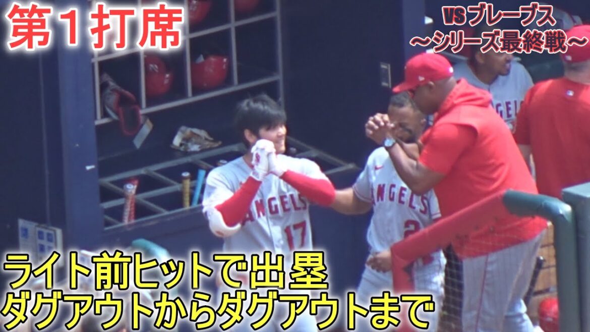 ライト前ヒット出塁&塁上の様子~第1打席~【大谷翔平選手】対アトランタ・ブレーブス~シリーズ最終戦~Shohei Ohtani vs Braves 2023