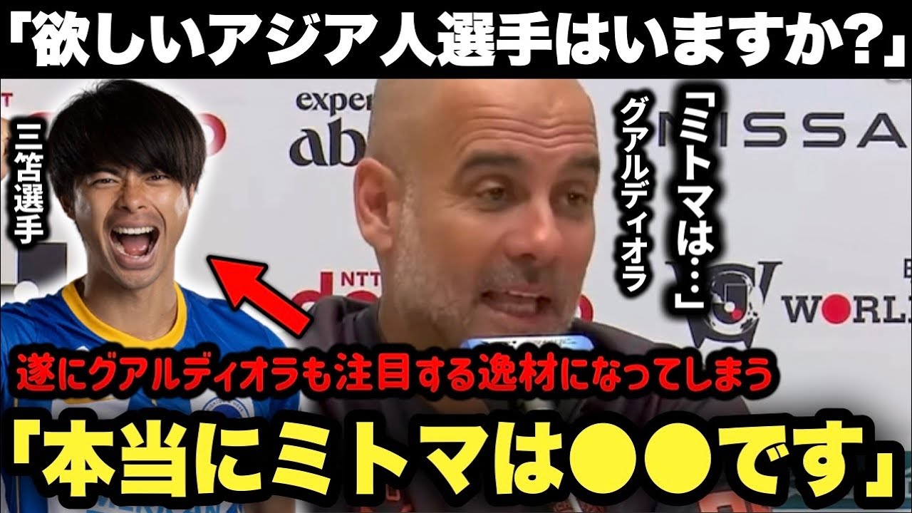 マンチェスターシティのグアルディオラ監督が「欲しいアジア人選手はいますか?」という質問の対し、三笘薫の名前を挙げて、大絶賛しています!!