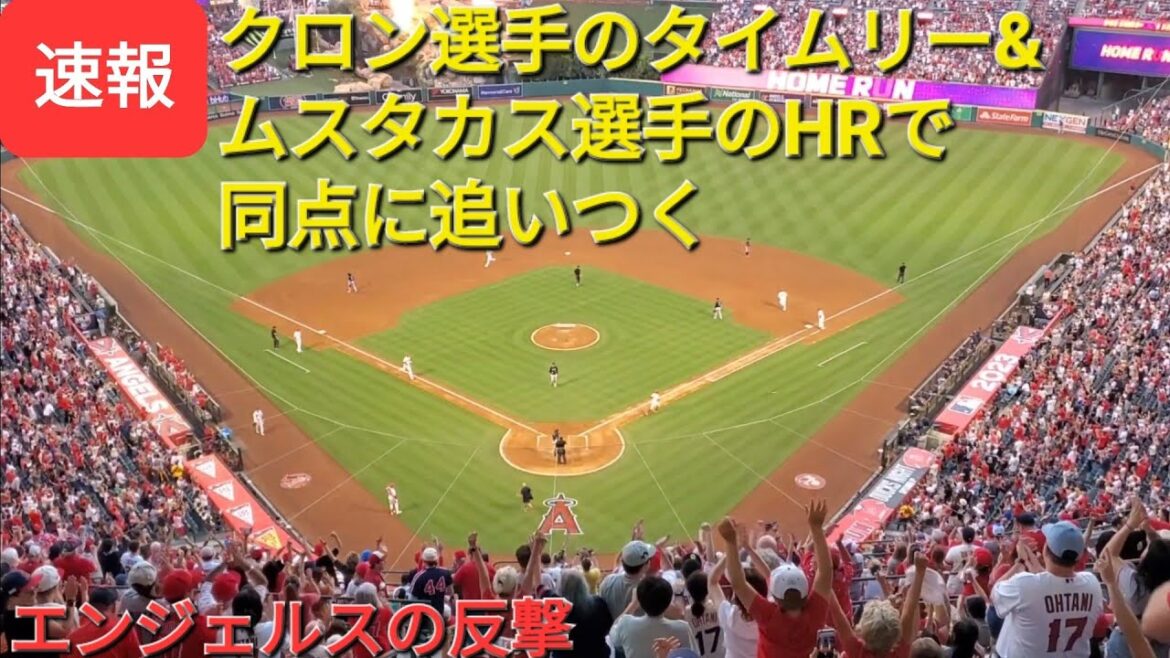 クロン選手のタイムリーヒット&ムスタカス選手のスリーランホームランで5対5の同点に追いつくエンジェルス-大谷翔平選手は2点目のホームを踏む