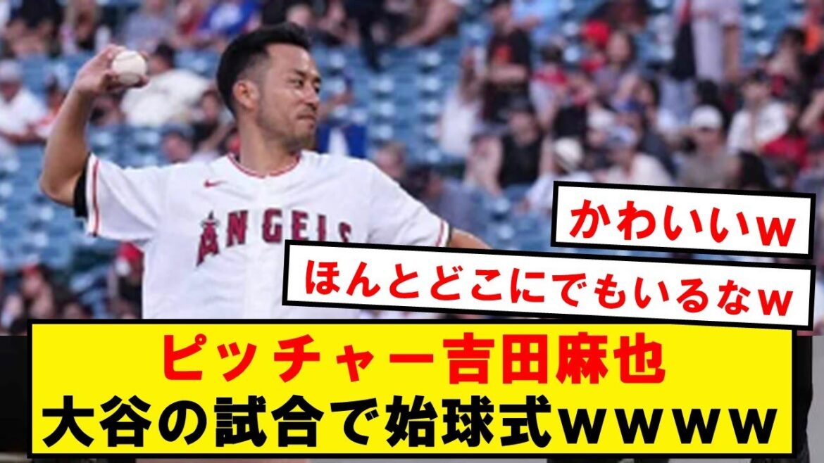 吉田麻也さん、エンゼルススタジアムで始球式! なんとサンディがキャッチャー💕
